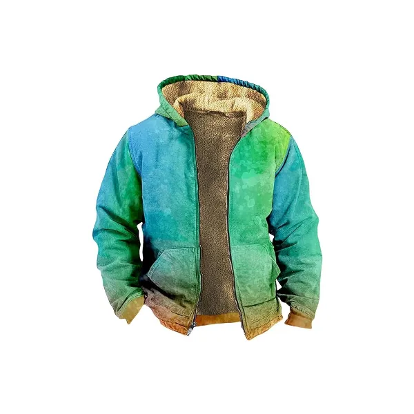 Mens Zip Up Hoodie Winter Fleece Lined Graphic Jacket Heavy Big And Tall Warm Coat Thermal Graphic Tie Dye Outwear